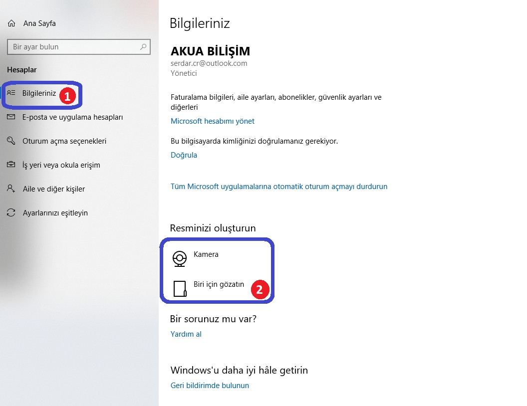 Microfosft Hesabıyla Hesap Resmi Değiştirme